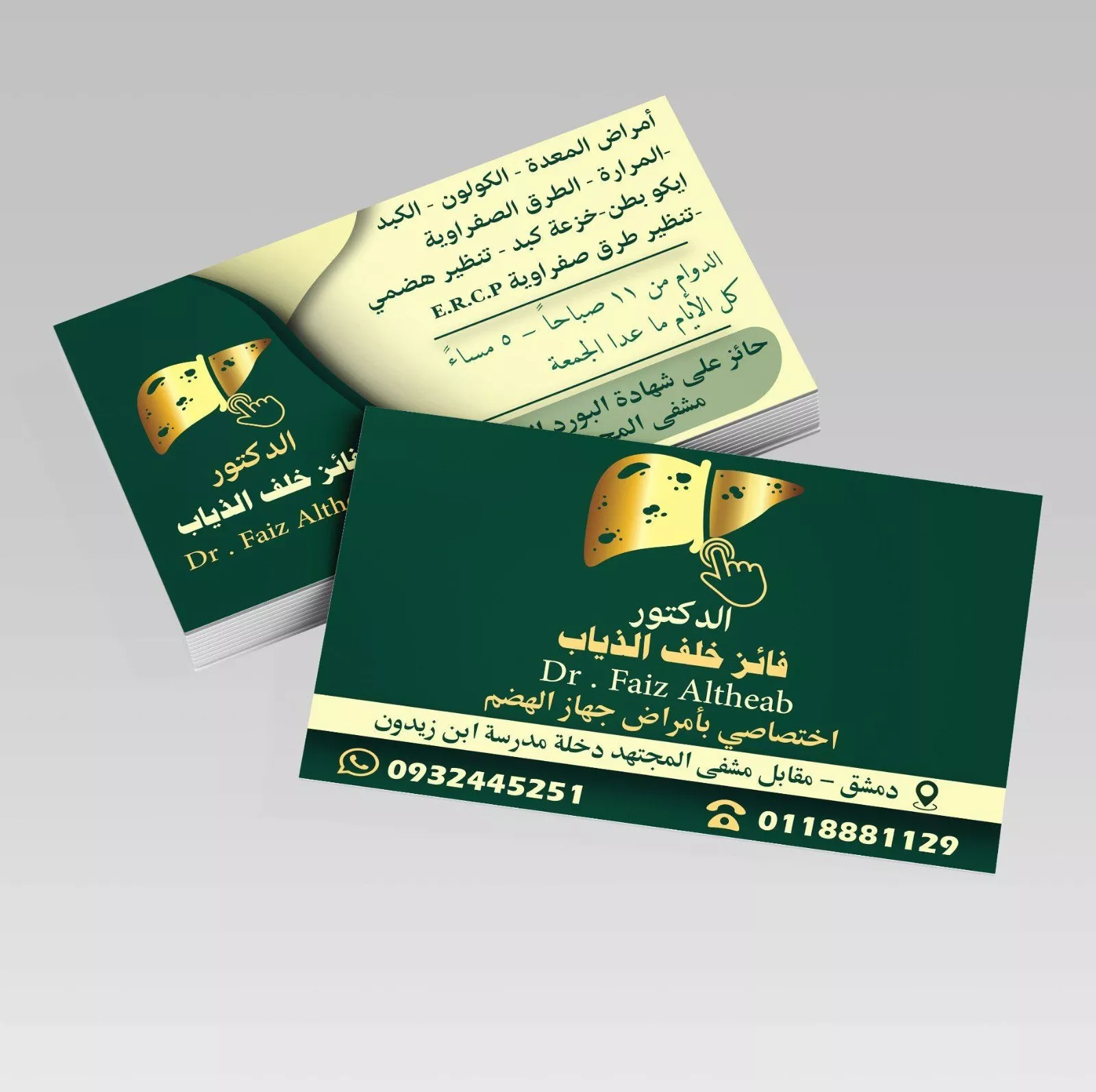 العيادة الهضمية التخصصية بإشراف 👨⚕️ الدكتور فائز خلف الذياب 🔹 أختصاصي بأمراض الجهاز الهضمي والكبد حائز على شهادة البورد السوري (مشفى المجتهد) تقدم العيادة الخدمات التالية : 🔹 تشخيص ومعالجة أمراض: المري – المعدة – الكبد – الأمعاء – المرارة – الطرق الصفراوية 🔸 تنظير علوي وسفلي – تنظير طرق صفراوية – خزعات كبد - ايكو بطن 🔹 معالجة النزوف الهضمية – أمراض الشرج – البواسير دون جراحة 🔸 علاج البدانة بـ بالون المعدة و البوتوكس 📍 العنوان: مقابل مشفى المجتهد – جانب مدرسة ابن زيدون – مقابل مكتب ابن زيدون 📞 للحجز والاستفسار: 0932445251 🕘 أوقات الدوام: يوميًا (عدا الجمعة ) من ١١ صباحًا حتى ٥ عصراً يقدم الدكتور مجموعة متكاملة من خدمات أمراض الجهاز الهضمي، تشمل تشخيص وعلاج القرحة الهضمية، الارتجاع المريئي، القولون العصبي، أمراض الكبد، التهابات المعدة والأمعاء، واضطرابات الهضم. يتم ذلك ضمن بيئة طبية احترافية وبأحدث الأجهزة العالمية، وبأسعار مناسبة لجميع الحالات.